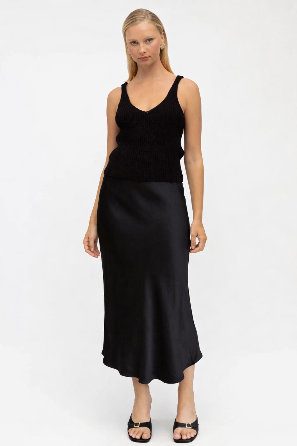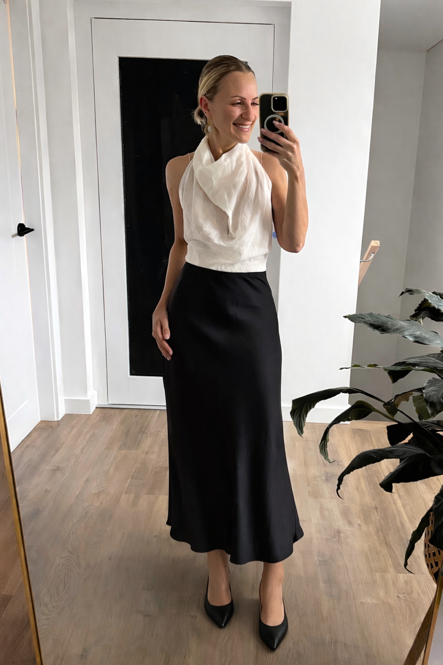 Satin Bias Skirt - Black